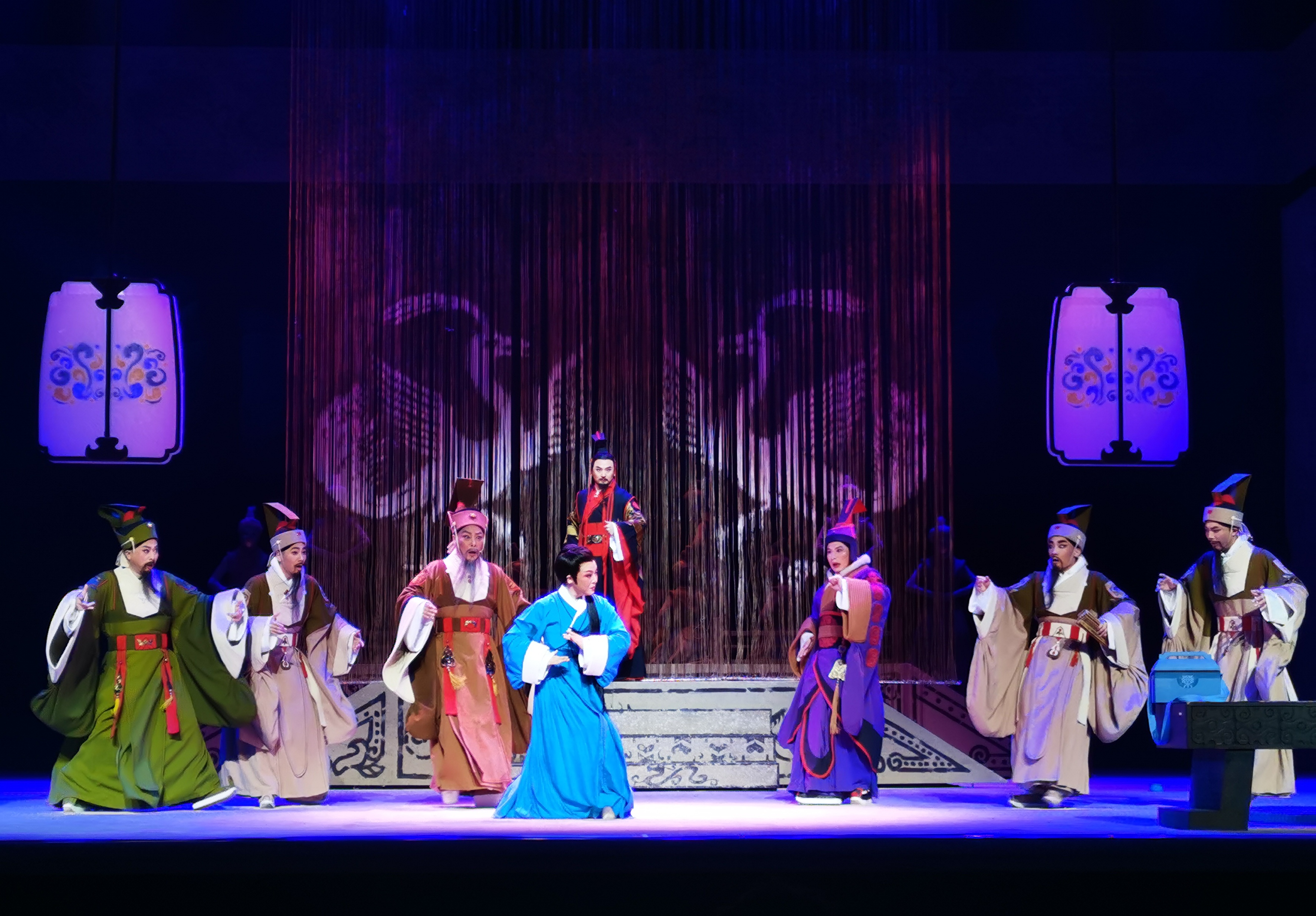 “暂抛开家族恨、昭雪愿、苦仇心、生死念,将一身本事还报百姓,我心方安……”饰演女主角义妁的程丞,唱腔感人肺腑,表演真挚细腻,将一个身世传奇、性格鲜明、心怀大爱的人物形象表现得淋漓尽致,深深感染现场观众。最后,随着义妁与众太医伏地救治瘟疫百姓的感人一幕,全剧在悠悠余韵中落下帷幕。谢幕时,观众久久不愿离去,在热烈的掌声与欢呼声中,程丞与张辉又返场加演了一段《罗帕记》选段。